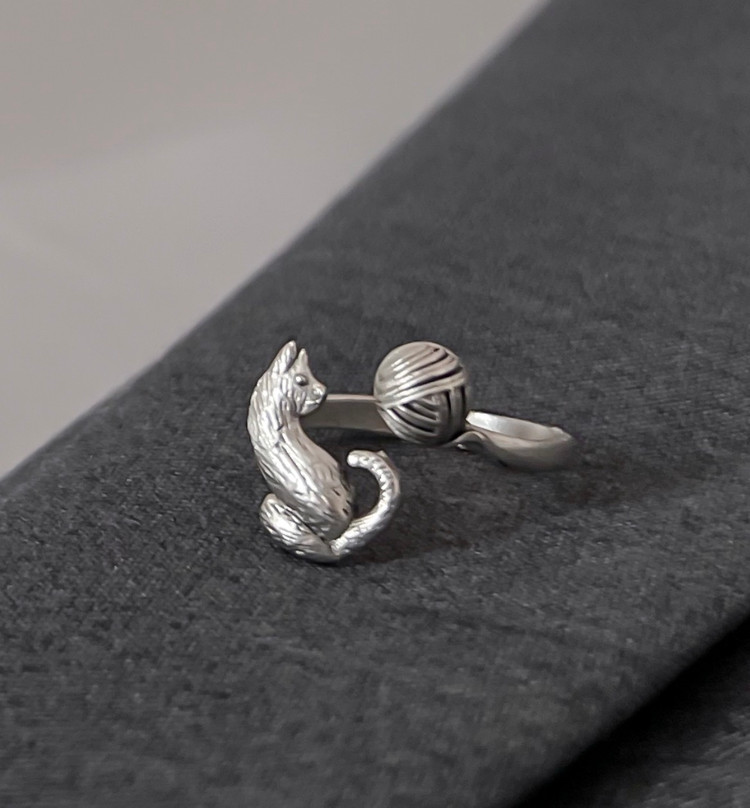 انگشتر ورشو مدل گربه ، فری سایز ، ابکاری نقره ، ضد حساسیت