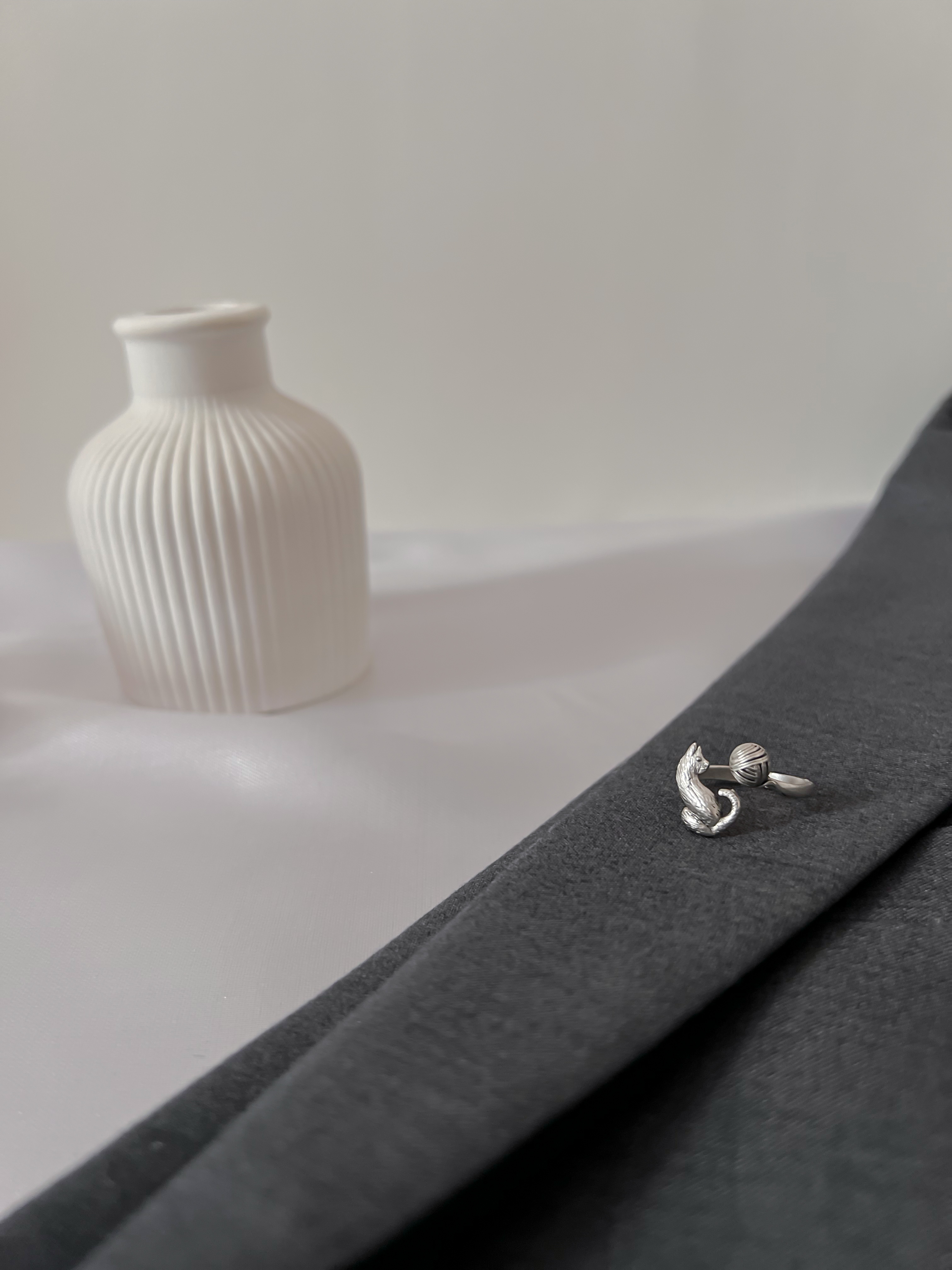 انگشتر ورشو مدل گربه ، فری سایز ، ابکاری نقره ، ضد حساسیت