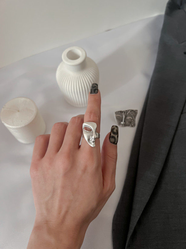 انگشتر ورشو مدل چهره ، ضد حساسیت ، ابکاری نقره ، فری سایز