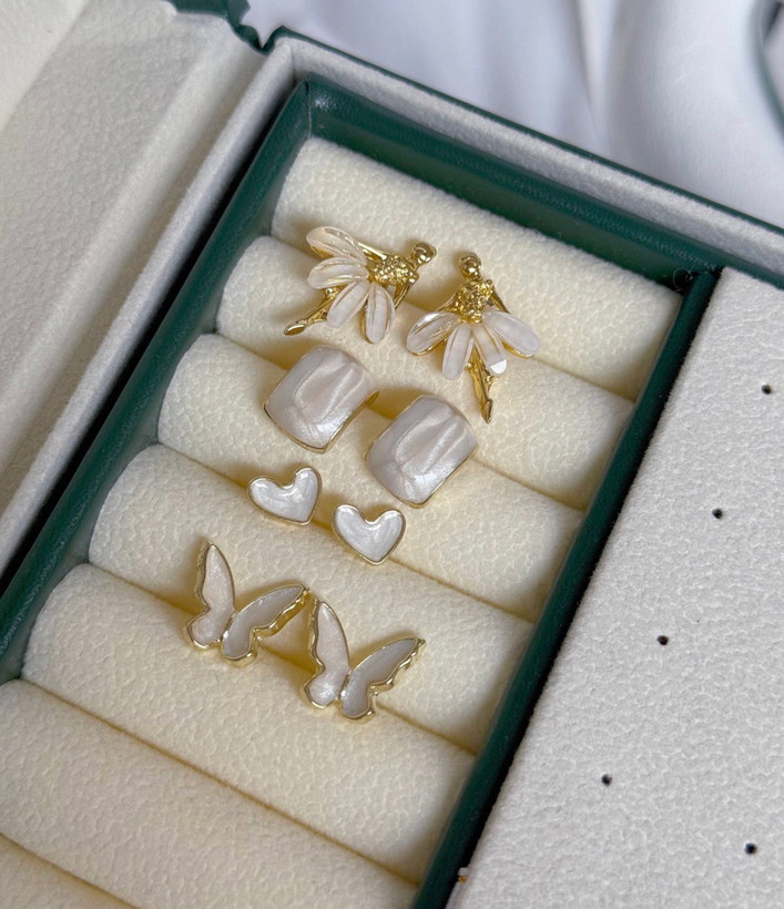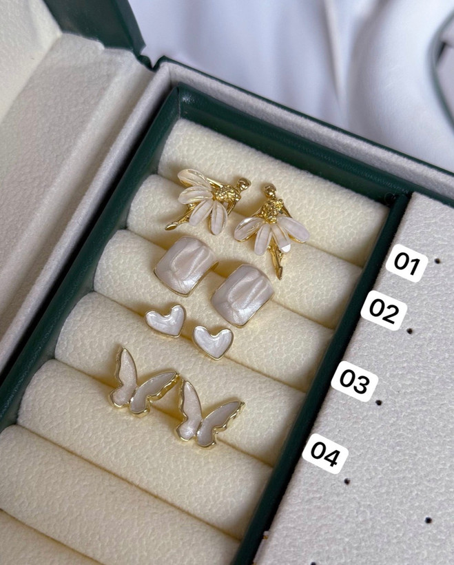 کالکشن گوشواره صدفی ، وارداتی ، جنس میخ نقره ، جنس بدنه ابکاری رادیوم ، ضدحساسیت ، سبک درگوش ، هرگونه بدلیجات از موادشوینده عطر ادکلن استخر عرق اسیدی دور باشند