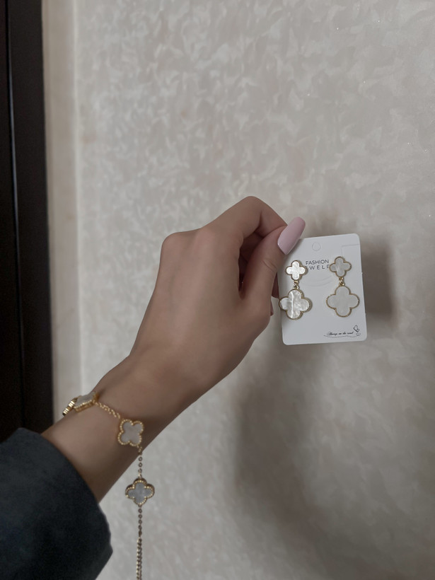 گوشواره ونکلیف سفید طلایی آویز دار /وارداتی/کیفیت بالا/جنس میخ نقره/جنس بدنه ابکاری رادیوم/ضدحساسیت/سبک درگوش/هرگونه بدلیجات از موادشوینده عطر ادکلن استخر عرق اسیدی دور باشند
